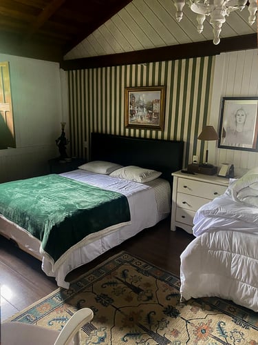 Lugar com vista excelente, acomodações de qualidade, 4 suítes, mais duas camas de solteiro, cozinha completa com fogào a lenha, loung com forno de Pizza, mesa para 12 pessoas.
